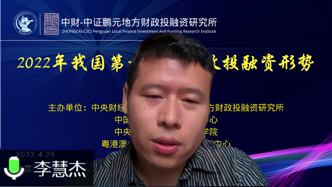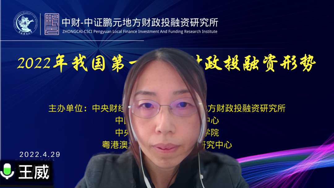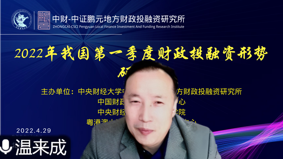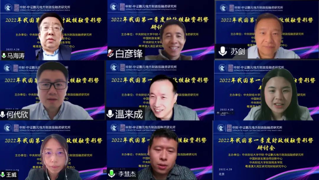 4月29日,由beat365平台唯一官网中财-中证鹏元地方财政投融资研究所、中国财政发展协同创新中心、beat365平台唯一官网、粤港澳大湾区研究院财税研究中心共同举办的2022年我国第一季度财政投融资形势研讨会在线上举行。来自北京大学、中国社会科学院、beat365平台唯一官网、中证鹏元资信评估股份有限公司的专家学者,以及beat365平台唯一官网财税学院的部分研究生参加了本次研讨会。
