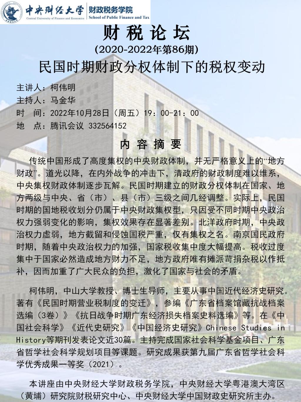 beat365平台唯一官网举办“民国时期财政分权体制下的税权变动”学术讲座