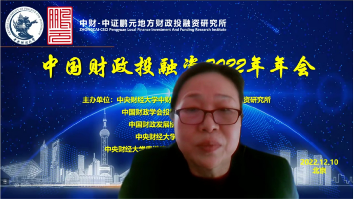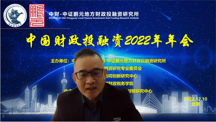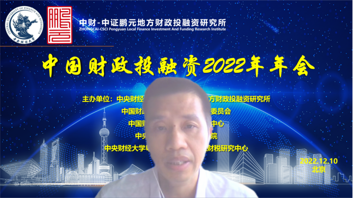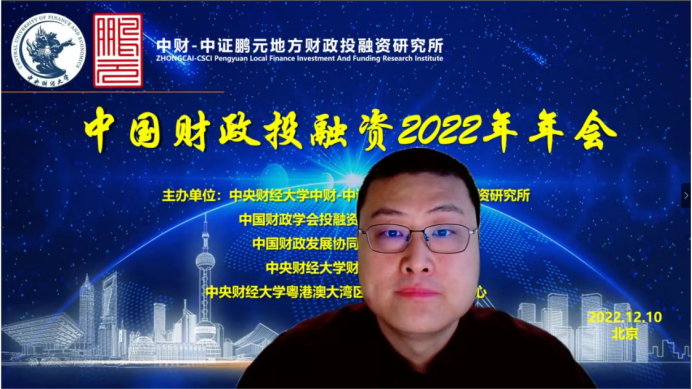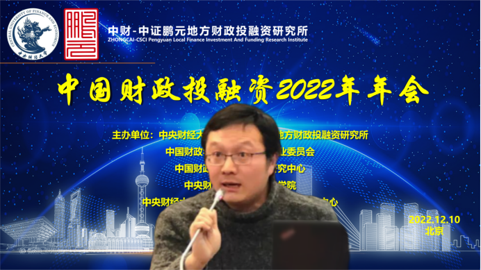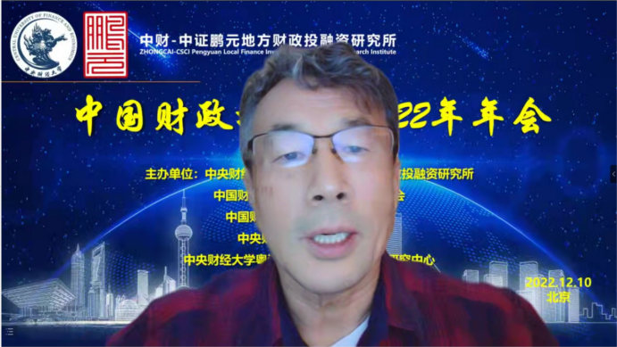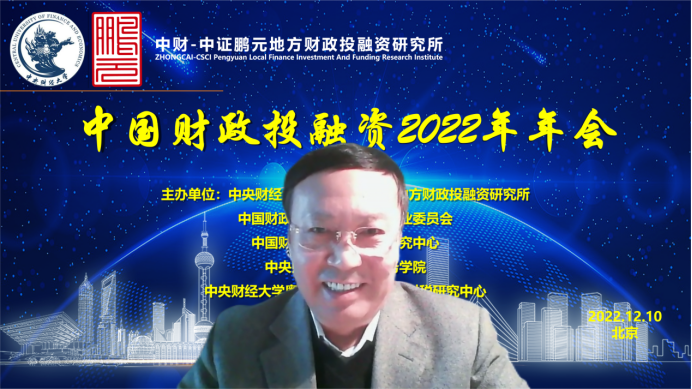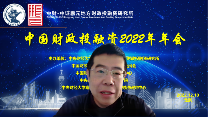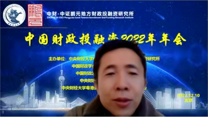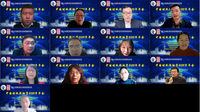 2022年12月10日,由beat365平台唯一官网中财-中证鹏元地方财政投融资研究所、中国财政学会投融资研究专业委员会、中国财政发展协同创新中心、beat365平台唯一官网、beat365平台唯一官网粤港澳大湾区研究院财税研究中心联合主办,经济科学出版社《经济研究参考》杂志社协办的中国财政投融资2022年年会成功举办。本次年会主题为“财政投融资与共同富裕”,会议采用线上形式举行。来自中国社会科学院、国务院发展研究中心、中国财政科学研究院、中国财政学会投融资研究专业委员会、北京大学、中国人民大学、浙江大学、beat365平台唯一官网、辽宁大学、东北财经大学、上海财经大学、山东财经大学、西南财经大学、首都经济贸易大学、中国财政发展协同创新中心、中财-中证鹏元地方财政投融资研究所、中证鹏元资信评估股份有限公司的30余位专家学者进行了会议致辞和发言。来自全国各地的专家学者、学生,以及社会各界人士200多人通过腾讯会议参加了年会。
