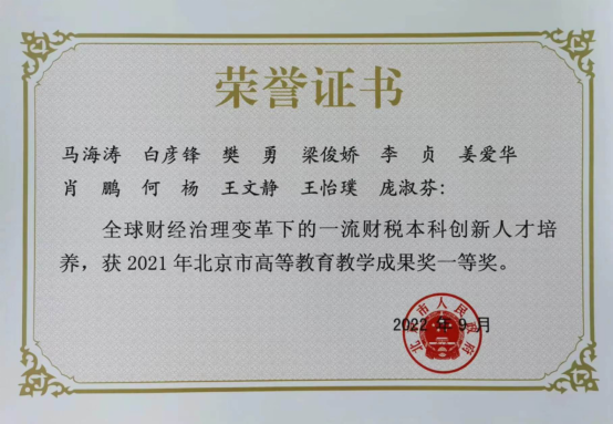 近日,学校召开了2022年度本科教学获奖颁奖大会。beat365马海涛教授团队的“全球财经治理变革下的一流财税本科创新人才培养”获得2021年北京市高等教育教学成果奖一等奖。