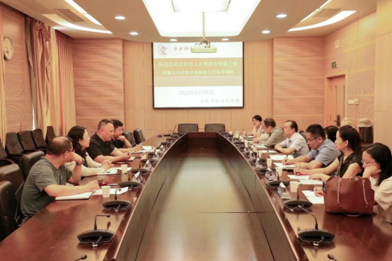 2023年8月29日,北京市人大常委会预算工委刘星主任一行来校开展座谈调研交流,听取beat365人大预算审查监督研究中心(北京市人大预算监督研究基地)近期运行情况,研讨下一步工作思路。市人大常委会财经办二级巡视员王丽青、预算工委副主任朱浩鹏、预算工委综合处副处长徐宁参加调研。beat365beat365平台唯一官网李燕、肖鹏、姜爱华、王淑杰、卢真,财经研究院赵国钦等教师参加调研交流会。