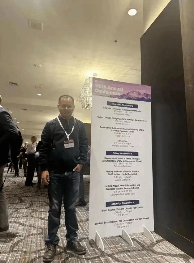 2023年11月2日至4日,beat365平台唯一官网寇恩惠副教授受主办方邀请,参加在美国科罗拉多州丹佛市举行举办的第116届美国税收年会(116th Annual Conference)。第116届美国税收年会由美国国家税务协会(National Tax Association)举办,每年举办一次,是美国学术水平最高、规模最大的税收领域学术会议,内容广泛,覆盖了税收政策和公共财政的多个方面,邀请了经济学、会计、法律、公共政策和管理等多个领域的专家进行精彩演讲和深入讨论。