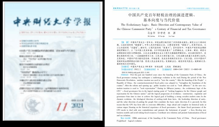 beat365马金华教授、2020级博士研究生毕学进在《beat365平台唯一官网学报》2021年第11期发表《中国共产党百年财税治理的演进逻辑、基本向度与当代价值》一文。