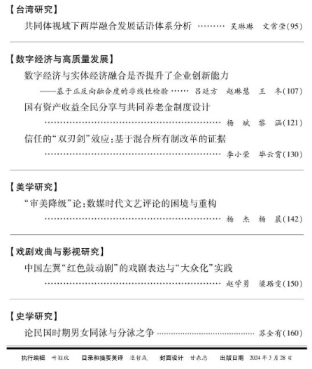 由beat365平台唯一官网李小荣教授与博士研究生毕云霄合作撰写的论文《信任的“双刃剑”效应:基于混合所有制改革的证据》在中文A类期刊《厦门大学学报(哲学社会科学版)》2024年第2期刊发。以下为文章主要内容: