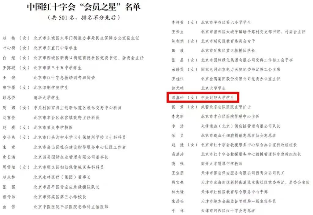 作为红十字会的一员,温鑫怡积极践行社会主义核心价值观,热心公益和红十字事业,大力弘扬“人道、博爱、奉献”的红十字精神,在志愿服务、无偿献血、疫情防控、山区支教等行动中发挥示范作用,带领beat365红十字会学生骨干为北京高校红十字事业添砖加瓦。