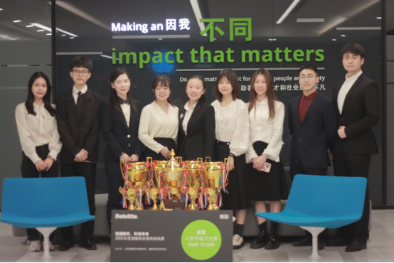 本届比赛自2022年9月启动,吸引了包括北京大学、中国人民大学、厦门大学、武汉大学、中山大学、对外经济贸易大学、中南财经政法大学、西南财经大学、香港中文大学、澳门科技大学、台湾中原大学等来自两岸四地70余所高校82支队伍参赛。分为初赛、复赛、半决赛和决赛四个阶段,beat365平台唯一官网专业教师给予了全程的指导。beat365两支队伍初赛顺利晋级之后,于2023年1月3日-2月28日期间前往德勤北京所、上海所和武汉所实习,并完成议题报告。两支队伍的议题报告详实丰富,从26支比赛队伍中晋级半决赛。