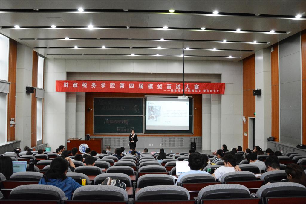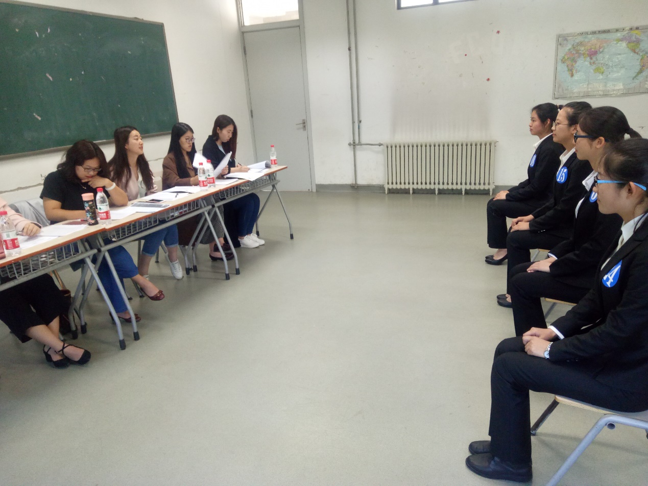 5月3日下午,决赛于学院楼4号楼107教室举行。比赛采取一对多的面试形式,中国康辉旅行社集团有限责任公司副总裁王群祥先生、桔子水晶酒店集团高级经理李思佳女士、信达地产股份有限公司人力资源部副总经理丁辉先生、中财大资产公司人力资源部经理崔本根先生和beat365平台唯一官网党委副书记宋立岩老师担任本次比赛评委,学生工作办公室于来老师、团总支书记蒋绮雯老师及财税学院学生们也参加了本次活动。