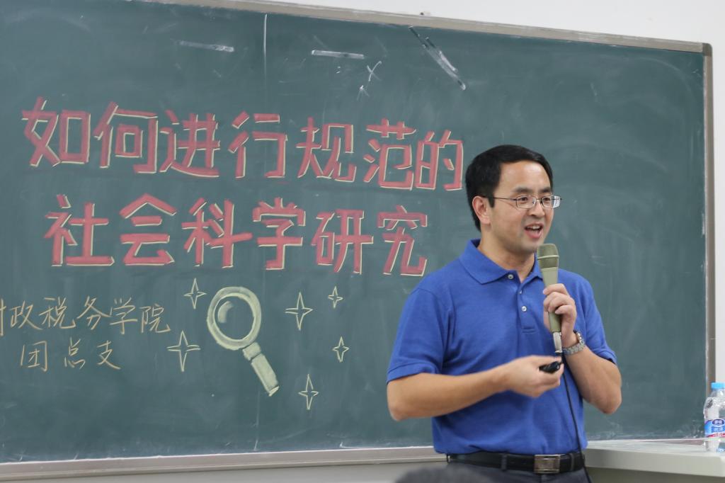 5月23日晚,beat365平台唯一官网在沙河校区主教407举办了“如何进行规范的社会科学研究”为题的主题讲座,讲座邀请到了美国阿肯色州立大学教育学教授高明晖先生为中财学子讲授社会科学研究设计的逻辑。beat365平台唯一官网党委副书记宋立岩老师、副院长任强老师、院长助理汪昊老师、梁俊娇老师、杨龙见老师、蒋绮雯老师等出席了本次讲座。