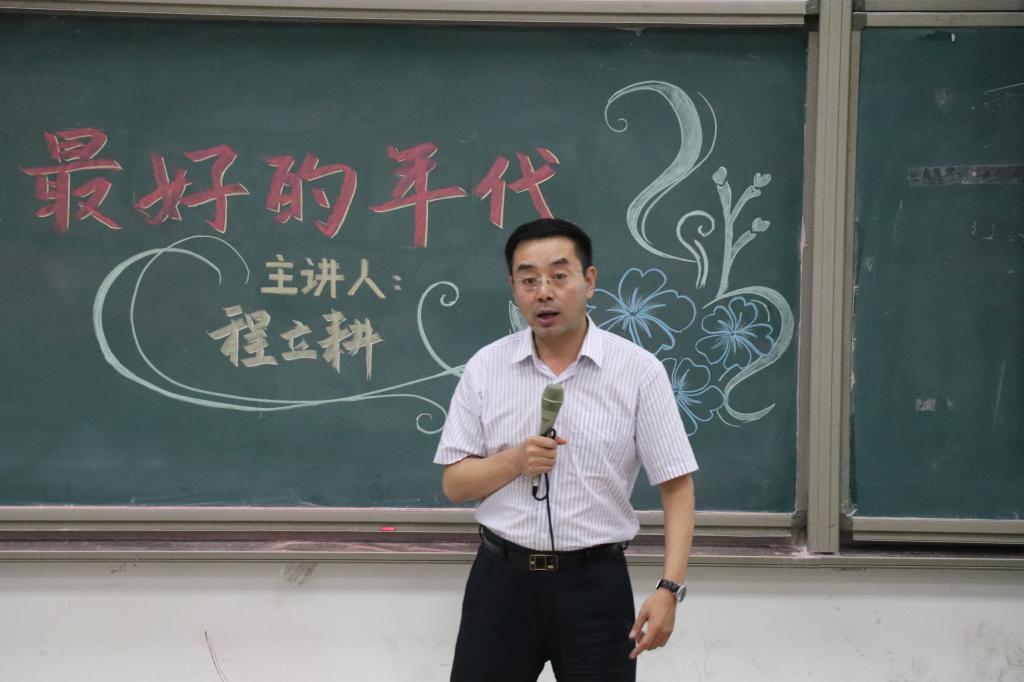随后,程老师讲到了习近平总书记历年来五四青年节时关于青年的讲话。习近平总书记勉励青年一定要:坚定理想信念,练就过硬本领,勇于创新创造,矢志艰苦奋斗,锤炼高尚品格。学生的本职是学习,程立耕老师勉励同学们勤学、修德、明辨、笃实,他还鼓励同学们在大学期间积极参与辩论活动。在大学期间,要注重德才并重,情理兼修,更加注重道德品质的培养。第三部分,程老师以“与时代同行,迎接时代挑战”为纲领展开介绍。程老师敏锐地把握到期了当今社会社会意识多样化、传播方式草根化、物质化、民主化等发展趋势。他勉励青年大学生做好人生规划,认真读书,志存高远。