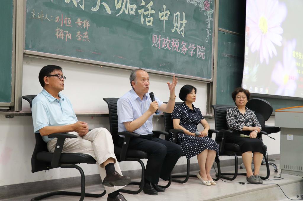 首先为同学们进行讲座的是刘桓教授。刘教授表示,作为财税学院的学生,首先要清楚自己应具备的个人素质,并且对自己未来的成长有所思考。刘教授针对新生同学提出了四点应具备的素质:对数字敏感、对社会时事敏感、广泛培养兴趣、拥有强健的体魄。同时刘教授希望,同学们在大学四年中做到四个“1”:拥有1个专长、结交10个好友、读100本好书以及每天跑步1000米。接下来登台的是梅阳教授。梅教授回顾了自己经历的中财39年发展,以自己的求学时光与当今对比,向同学们展示了中财的飞速发展。梅教授提醒同学们一定要注意学科互补,文理兼修,在如今跨界的大趋势下赶上潮流。然后与大家分享的,是黄桦教授。黄教授表示,既然选择了财税专业,就一定要开阔自己的眼界与胸怀,注意中国及世界的变化。同时,除了必须的技术手段之外,同学们更应重视基本理论的学习。最后,黄教授深情地表示,同学们应具有专业情怀,热爱自己的专业。最后登场的,是李燕教授。李教授提到,在刚进入大学的这段时间里,同学们要迅速完成“转型”,及时转变自己的心态和学习状态。这对于大学的学习将事半功倍。四位教授发完言后,讲座来到了同学提问环节。同学们反应热烈,针对同学们提出的“大学生如何将课程与实践更好的结合”、“读书方式的选择”、“大学课程的取舍”等问题,四位教授进行了耐心、细致的解答,帮助同学们切实地解决了问题。