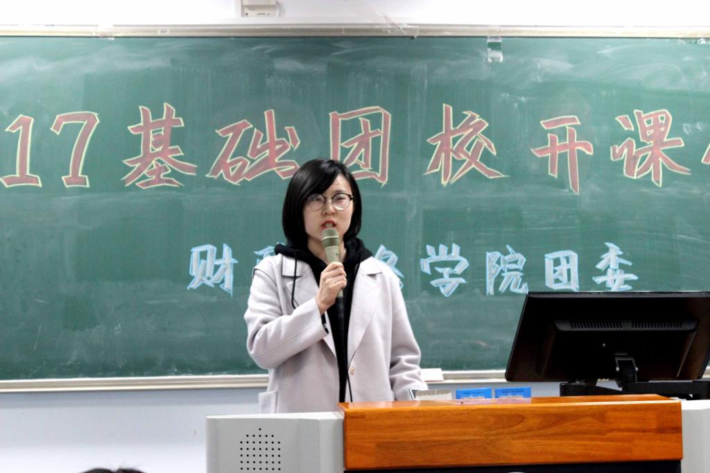 新生代表黄楚君则向全体学员强调了基础团校的重要性。她说,十九大的胜利召开之后,开展基础团校有助于大家认识自己,改造自己,并让自己朝着优秀的团员方向发展。同时基础团校有助于大家点燃真理之火,建设我们美丽的祖国。她也认为爱国不仅仅是在行为上做到爱国,也是在心灵上提升自身素养。