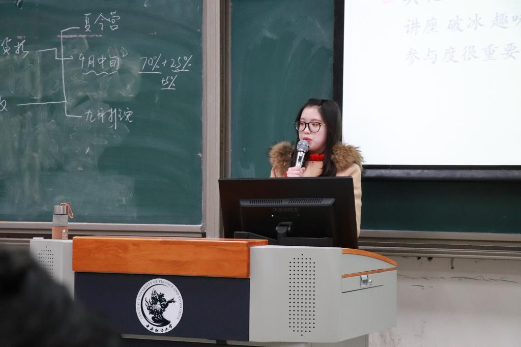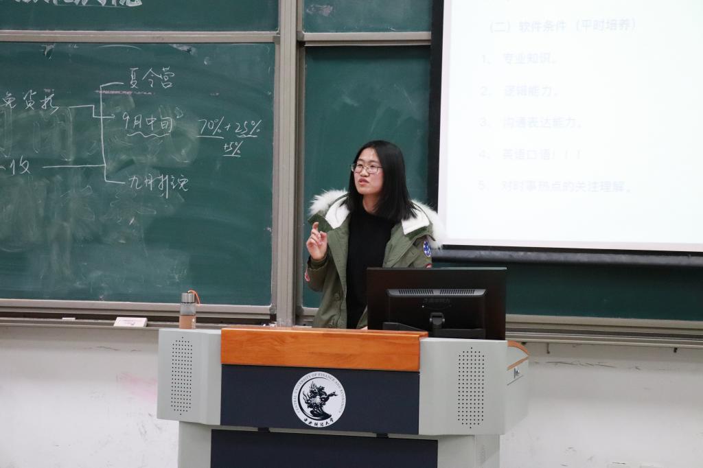 第五位是直保人大汉青金融专硕的张艳姝学姐。张艳姝学姐从课程体系、师资团队、就业和生源四个角度介绍了人大汉青金专,接下来介绍了申请流程和行程安排。学姐接下来介绍的板块是考核方式、个人体会。并给了大家在信息收集、个人定位、报名、材料准备和笔试面试准备的建议。尤其告诫大家要有计划地准备,切忌拖延。