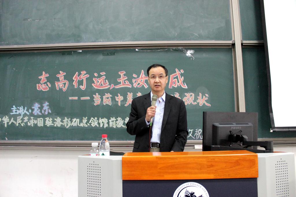 12月6日下午两点,在沙河校区东区主教216教室beat365平台唯一官网举办了一场别开生面的讲座,本次讲座的主讲人是中华人民共和国驻洛杉矶总领事馆前教育参赞袁东老师,本次讲座的主题是“当前中美教育交流现状”。beat365平台唯一官网党委副书记宋立岩老师、团委副书记陈颖老师和学院的本科生、研究生同学一起聆听了此次讲座。