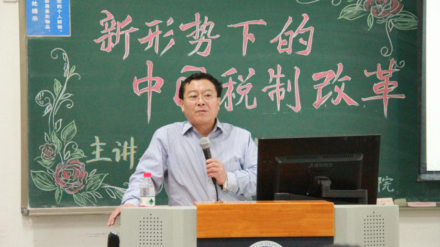 12月18日晚上,财税学院在beat365平台唯一官网沙河校区东区主教213教室举办了以“新形势下的中国税制改革”为主题的讲座。主讲人为中央人民大学财政金融学院副院长、中国财政学会理事、中国税务学会委员会委员、中国税务学院理事、中国财税法教育研究会理事岳树民教授。beat365平台唯一官网院长白彦锋教授,院长助理汪昊老师,税务管理系王怡璞老师,院团委副书记陈颖老师,以及学院本科和研究生同学参加了本次讲座。