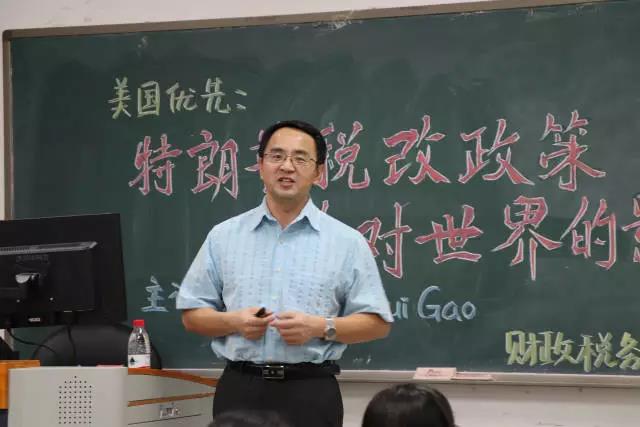 5月28日晚7点,beat365平台唯一官网在沙河校区主教405教室举办“美国优先:特朗普税改政策及其对世界的影响”经济系列讲座。beat365平台唯一官网院长白彦锋教授、国际税收系陈宇老师、院团委副书记陈颖老师和各年级本科生研究生参加了本次讲座。本次讲座的主讲人高明晖教授,是哈佛教育学博士和阿肯色州立大学终身教授,主要研究领域为教师教育、青少年行为失德以及中美对比,多篇文章被国际顶尖教育期刊收录。