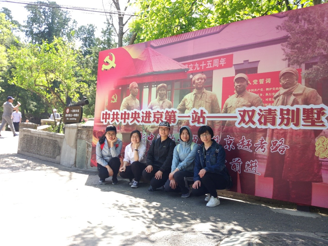 1949年3月25日中共中央从西柏坡迁至北平,起先暂住在香山。毛泽东在双清别墅指挥了渡江战役,并筹备了中华人民共和国的成立。大家怀着激动的心情参观了全国爱国主义教育基地香山双清别墅,追随红色的记忆,伟大领袖毛主席当年居住的地方,感觉那么亲切,醒目的入党誓词,院内有六角凉亭、银杏树、松柏,环境幽雅,建筑古朴。