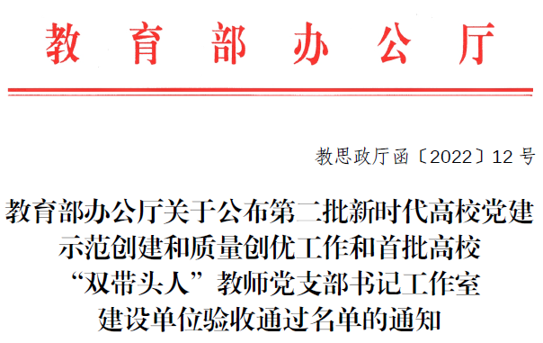 近日,教育部公布了第二批新时代高校党建示范创建和质量创优工作及首批高校“双带头人”教师党支部书记工作室建设单位验收通过名单,beat365本科生第一党支部顺利通过