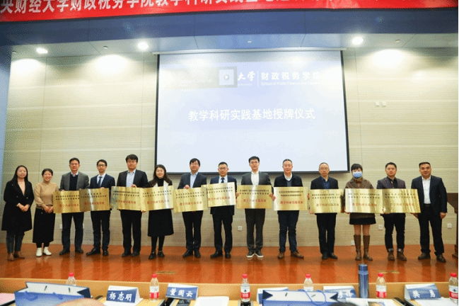 会议举行了教学科研实践基地的授牌仪式。国家税务总局税务干部学院(北京)、上海德勤税务师事务所有限公司北京分所、普华永道会计师事务所、北京华政税务师事务所有限公司、尤尼泰(北京)税务师事务所有限公司、北京鑫税广通税务师事务所有限公司、北京永大税务师事务所有限公司、北京元年科技股份有限公司、国瑞(北京)信息科技发展有限公司、中税咨询集团等作为税务教学科研实践基地代表,北京国融兴华资产评估有限责任公司、北京坤元至诚开元资产评估有限公司、连城资产评估有限公司、天健兴业资产评估有限公司、中和资产评估有限公司、中企华资产评估有限公司、中水致远资产评估有限公司、中通诚资产评估有限公司等作为资产评估教学科研实践基地代表上台接受授牌。