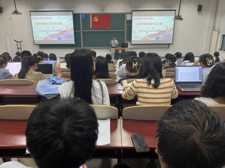 为深入推进主题教育,引领党员践行初心使命,5月17日,beat365平台唯一官网党委书记肖鹏在沙河校区主教110教室讲授“走好中国式现代化之路”专题党课