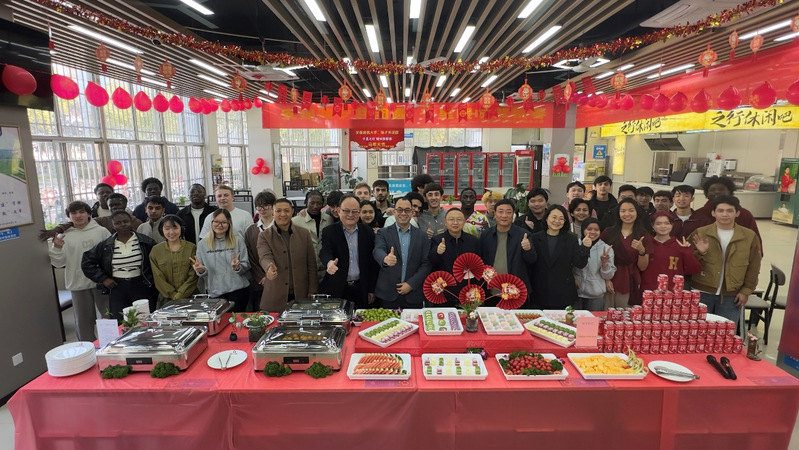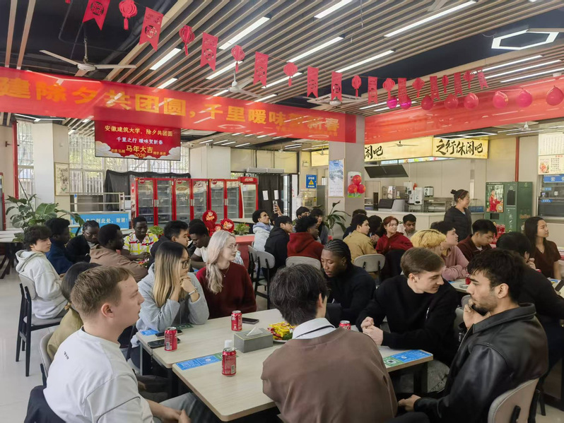校党委常委、副校长杨科,校党委常委、副校长高跃峰,后勤基建处、学生处、保卫处、国际教育学院负责人及相关工作人员与几十名留学生欢聚一堂,共享团圆宴,共话新年愿景。