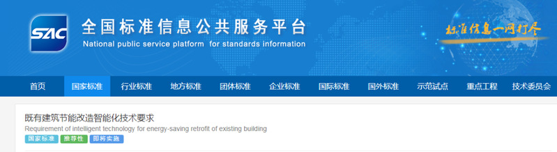 根据国家市场监督管理总局、国家标准委员会2020年第28号中国国家标准公告:《既有建筑节能改造智能化技术要求》(GB/T 39583-2020)国家标准正式批准发布!自2021年7月1日起正式实施。