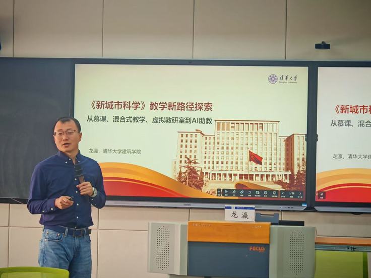 上午专家讲座,邀请了清华大学建筑学院龙瀛教授担任嘉宾,对《新城市科学》AI课程建设进行了经验分享。龙瀛教授结合丰富的教学实践与前沿研究成果,以该课程建设为典型案例,系统阐释了从慕课开发、混合式教学模式构建、虚拟教研室搭建到AI助教应用的全链条教学创新路径。他详细解读了AI课程建设的背景动因、实施流程、实践困惑及解决策略,并从AI对学生学习方式变革和教师教学模式创新的双向影响维度,引导参会教师深入探讨大规模教学与个性化培养的协同路径、AI助教建设的多元模式、未来高校教师角色重构以及智能教学工具应用的初心使命等前沿议题。