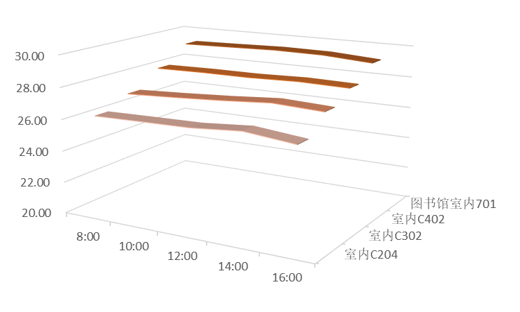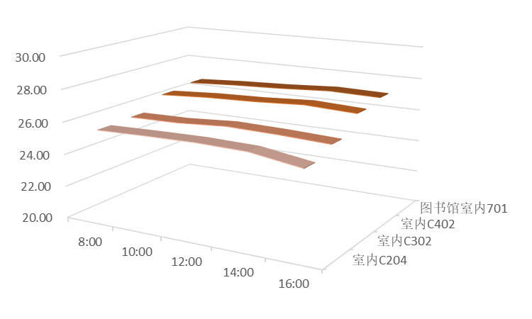 说明:图17至图20三维带状折线代表室温,单位为摄氏度。