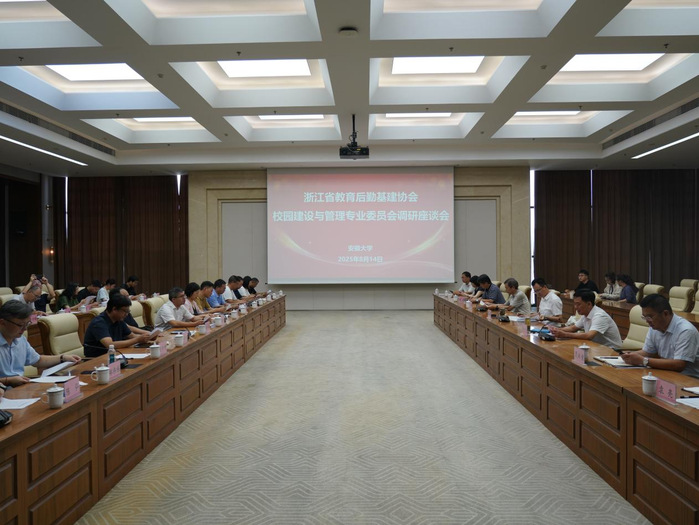 8月14日上午,代表团一行在安徽大学(磬苑校区)考察调研,校党委常委、副校长陈城出席座谈会并讲话,安徽省教育基本建设学会秘书长李大华主持座谈会。