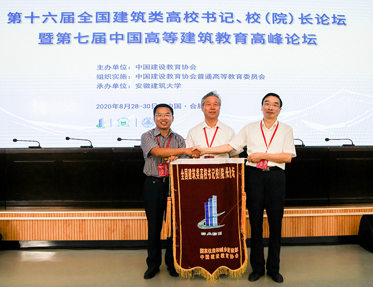 论坛最后进行了会旗交接仪式,第十七届全国建筑类高校书记、校(院)长论坛暨第八届中国高等建筑教育高峰论坛将于2021年在吉林建筑大学举办。(文/图:尹雪莲 姚婷婷;审稿:储金龙)