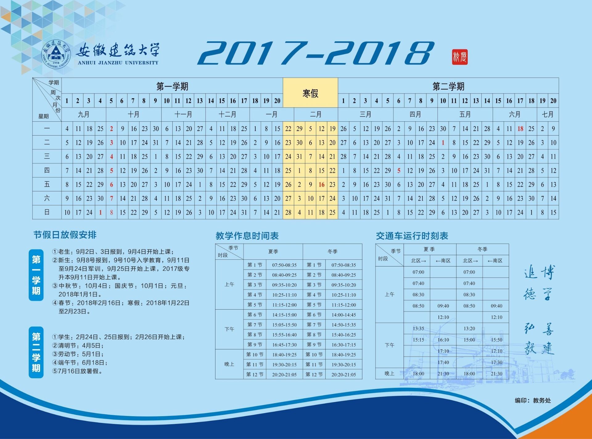 2017-2018学年校历
