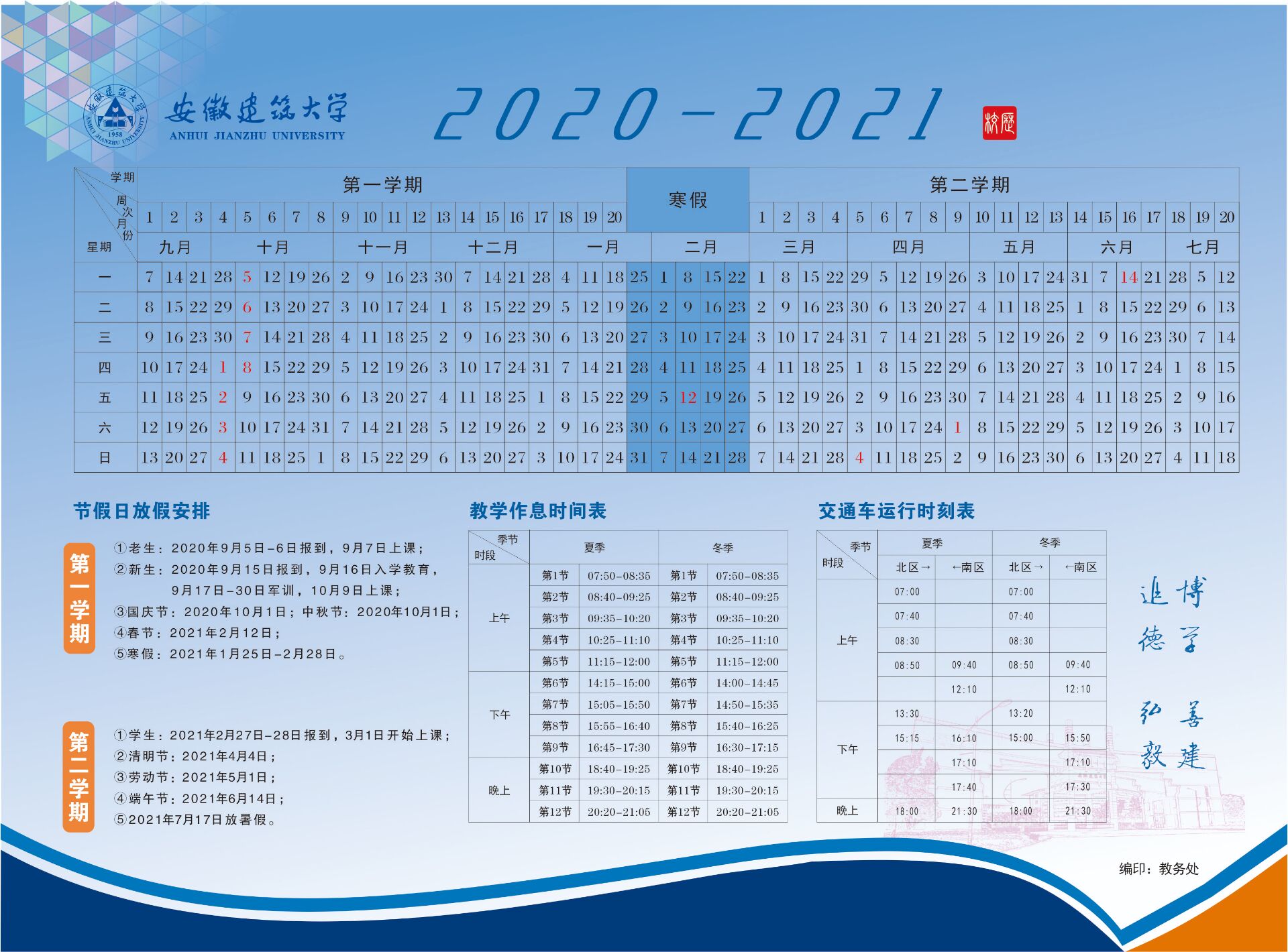 2020-2021学年校历