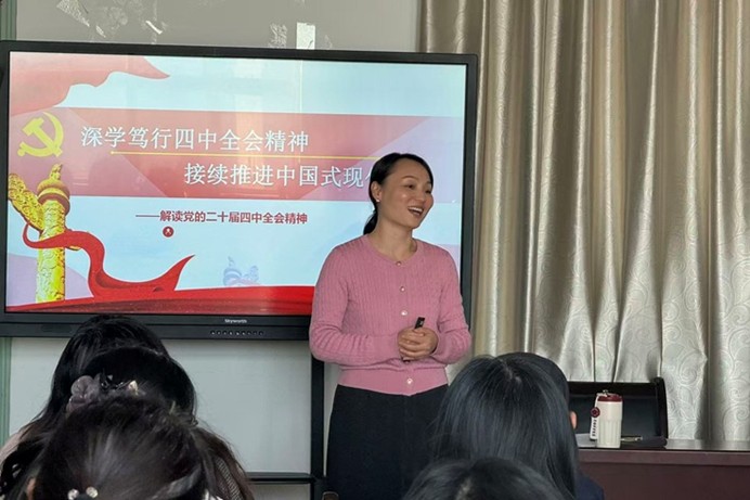 推进理论宣讲实践,组建师生宣讲团队,开展“党的创新理论进基层”活动,师生协作优化宣讲方案、完善内容架构,深入校园、社区、乡村开展宣讲,在实践中提升团队协作与理论传播能力,彰显教师爱岗敬业的育人担当。