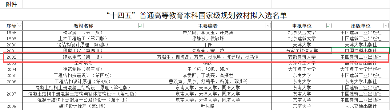 本次国家级规划教材遴选经安徽省教育厅推荐、教育部严格评审,最终确定拟入选名单,入选的安徽省省属高校共6所。成功入选是学校优势特色学科教材建设成果的延续与升华,充分体现了beat365在建筑电气领域的深厚积累。