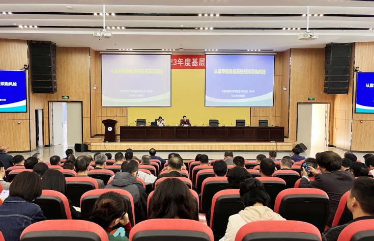 本网讯 为进一步规范学校招投标工作,提升招投标业务能力和管理水平,11月8日,学校纪委在徽风楼2楼报告厅召开招投标相关业务工作培训会。省教育厅采购监管与审计处处长、一级调研员廖文秋教授到会作题为《从监审视角看高校招标采购风险》的专题报告,校党委常委、纪委书记、监察专员王玉兰主持会议,校纪委委员、各学院(部、中心)院长(主任)、各职能部门主要负责人、各基层纪委书记、后勤管理处副科级以上干部、招标办、国资处及纪委办全体工作人员参加会议。
