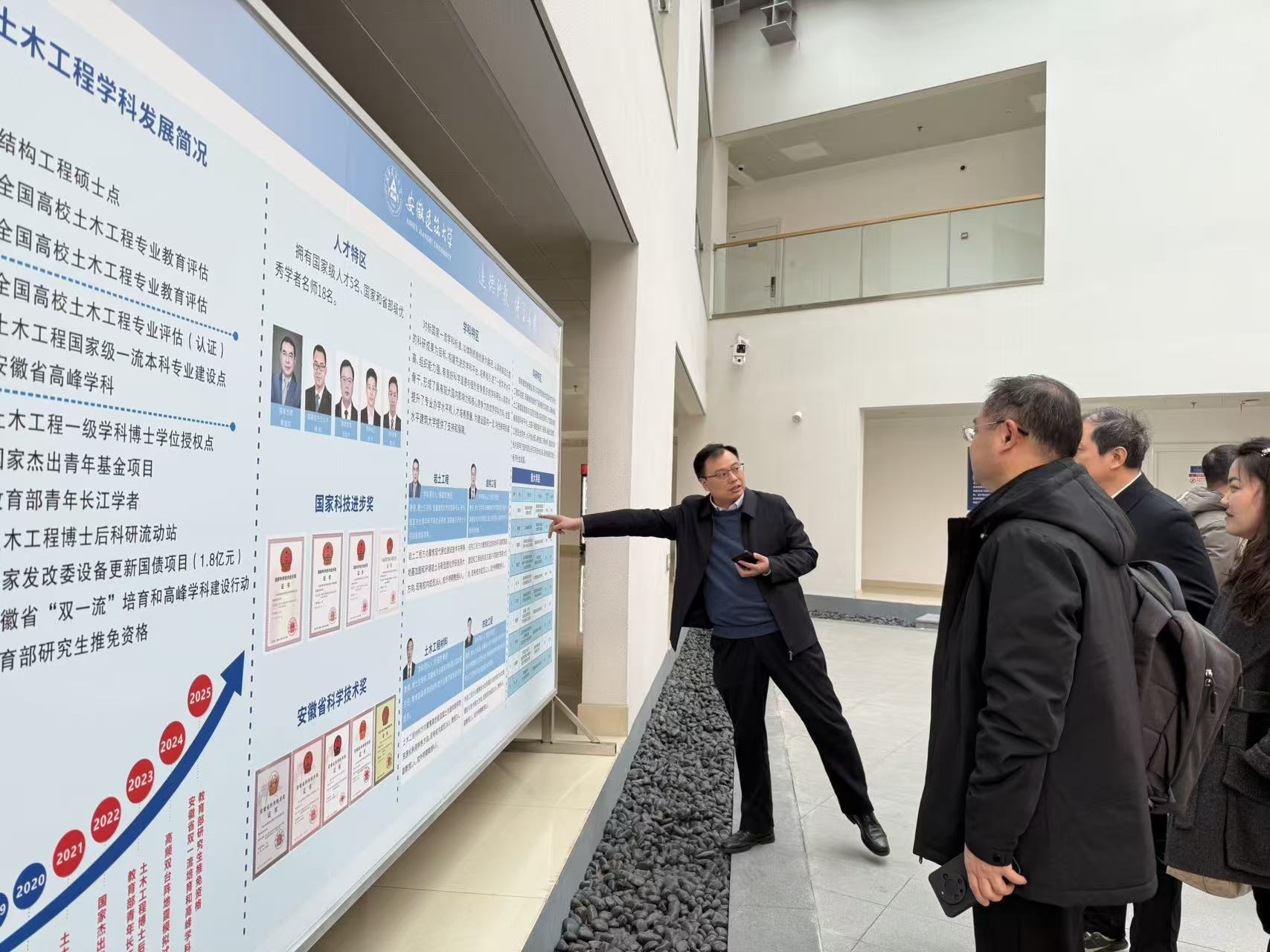 汇报会后,专家组深入实地考察了学校高等研究院融合发展创新研究中心、教育部虚拟仿真实验中心、安徽省BIM工程中心等关键场所,对实训设施的先进性、实用性及资源整合力度给予充分肯定。