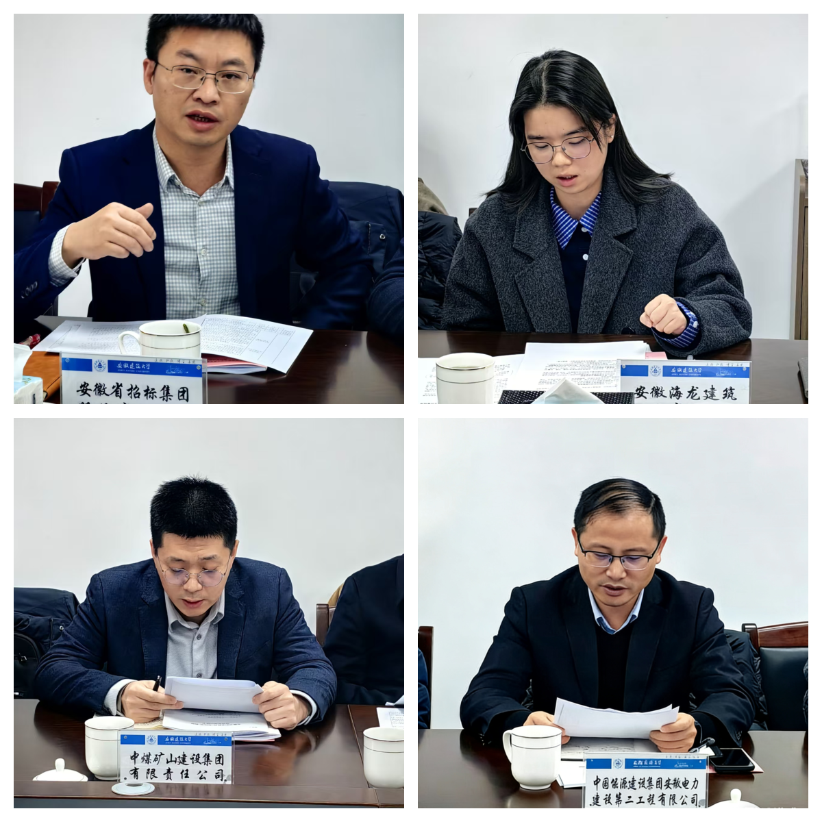 中国能源建设集团安徽电力建设第二工程有限公司、中煤矿山建设集团有限责任公司、安徽省招标集团股份有限公司、安徽海龙建筑工业有限公司四家合作企业代表依次发言,详细阐述了参与基地建设的资源优势与郑重承诺,充分展现了深度协同育人的坚定决心。各企业一致表示,将主动打破资源壁垒,全方位开放核心技术、优质项目与骨干人才资源,与学校共同打造“虚实结合、软硬兼备”的高水平实训体系,助力基地构建“培训—实践—提升”的闭环育人格局。