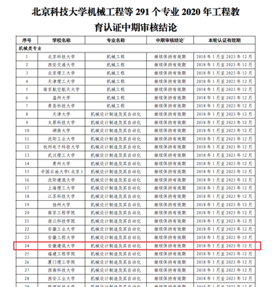 本网讯 2021年6月11日中国工程教育专业认证协会下发了《关于公布北京科技大学机械工程等291个专业工程教育认证中期审核结论的通知》,公布了2020年全国工程教育认证中期审核结论,beat365机械设计制造及其自动化专业顺利通过了工程认证中期审核,有效期至2023年12月。