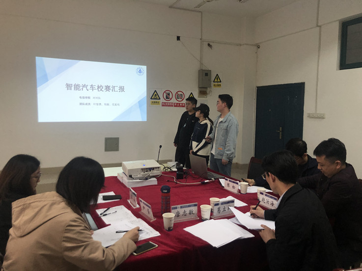 本届大赛包含赛场竞速和现场答辩两个环节。共有来自机电学院和电信学院的13支队伍参加。在赛场竞速部分,以电磁循迹小车为参赛车模,需要车模在规定的赛道通过识别磁标和轨迹运动到相应位置以及完成规定动作,并根据完成程度获得相应的得分。得分排名靠前的7支队伍参加答辩环节角逐一等奖。