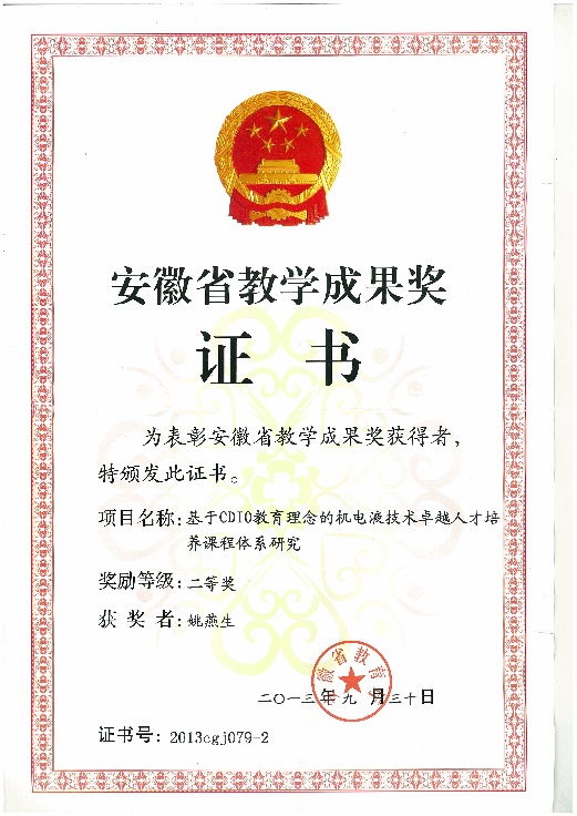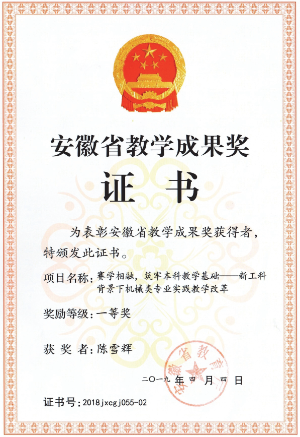 机械设计制造及其自动化专业教学团队,近5年来承担以国家自然科学基金为代表的国家、省、厅、学校各级各类科研教研课题60余项,发表学术论文120篇(其中一、二类或国际三大检索收录论文共50余篇),获得国家专利十余项,主编或参编教材6部及学术著作1部。近年来获得安徽省教学成果一等奖、二等奖3项、中国建设教育协会二等奖1项,获得省级质量工程10余项。
