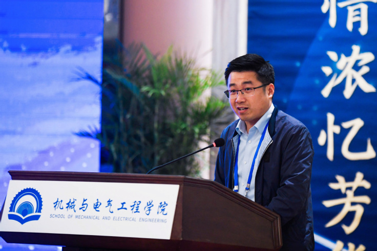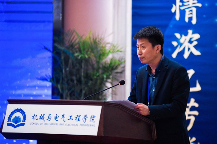 04机械校友代表单瑞峰同大家一起追忆峥嵘岁月,共话美好未来。他衷心希望机电校友分会依托学院和学校,以情感为纽带,以活动为载体,以服务校友、服务学校为目标,搭好互助合作平台。他呼吁校友要利用好这个平台,全力支持学院发展,共同为建设高水平有特色的学院,尽己所能、尽己所力,为母校65周年华诞添彩!