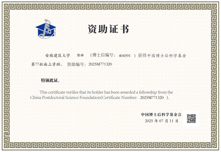 近日,中国博士后科学基金会发布了《关于公布2025年度中国博士后科学基金第77批面上资助获资助人员名单的通知》,机电学院博士后陈璐老师喜获第77批中国博士后科学基金面上项目资助。