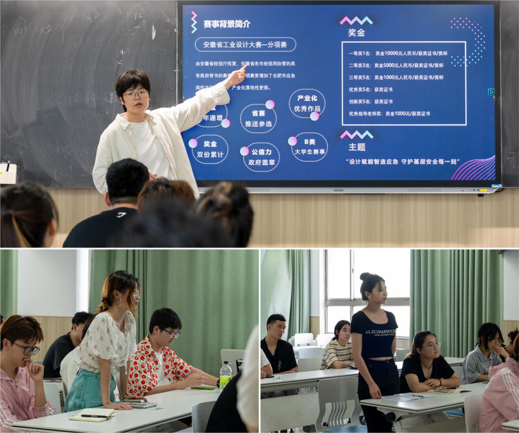 张媛为工业设计专业师生作专题报告。她结合行业前沿动态和丰富实践经验,系统解读了安徽省“英哈德杯”工业设计大赛的赛事规则、评审标准和备赛要点。现场互动环节气氛热烈,同学们就作品设计、技术实现等具体问题与专家进行了充分交流,有效激发了参赛热情。