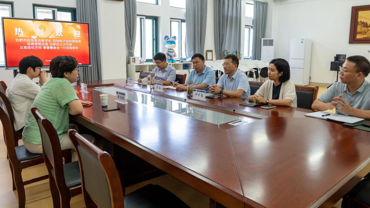 本网讯 7月2日下午,合肥市应急协会秘书长、四创电子总经理助理李思明,四创电子工业设计总监张媛一行来访我院,开展应急安全领域相关合作座谈交流与竞赛宣讲。机电学院党委书记叶少宝,副院长黄磊、陈中及相关系室负责人参加了座谈。
