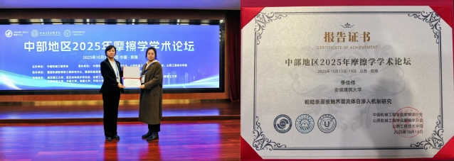 本网讯 近日,中国机械工程学会摩擦学分会在山西省阳泉市举办了中部地区2025年摩擦学学术论坛。中部地区摩擦学学术论坛发起人中国工程院院士、中国机械工程学会常务理事、武汉理工大学严新平教授,中国机械工程学会摩擦学分会主任委员、清华大学路新春教授,中部地区摩擦学学术论坛秘书长白秀琴教授,合肥工业大学刘焜教授等专家学者出席会议。来自中部地区六省和全国摩擦学研究领域行业专家、科研人员、研究生220余人参会。机电学院副院长刘伟、博士后季佳伟参加了会议。