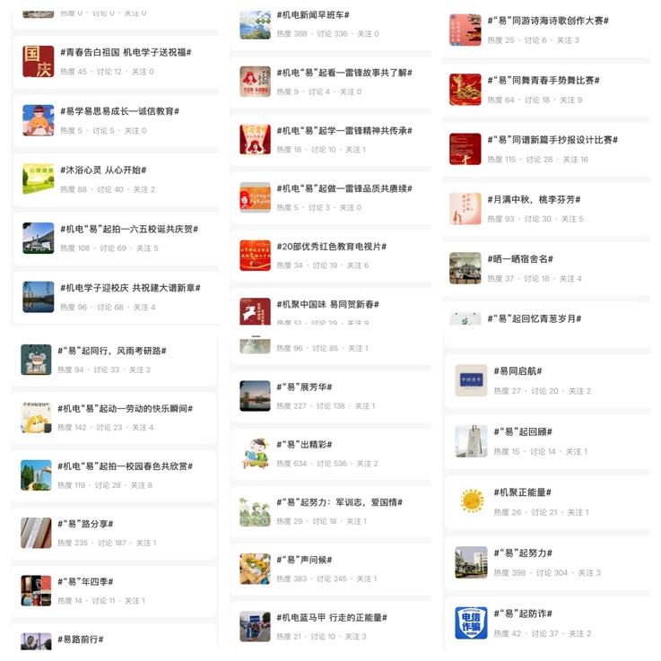 过去一年,工作站依托易班平台组织开展了一系列贴近学生、贴近专业的文化实践活动。通过社会实践、文体竞赛、榜样访谈等多种形式,不断丰富校园文化内涵。其中,“机聚中国味,易同贺新春”“易起拍校园”等品牌活动持续开展、反响热烈,共同将易班打造成为有深度、有特色、有温度的网络育人园地。