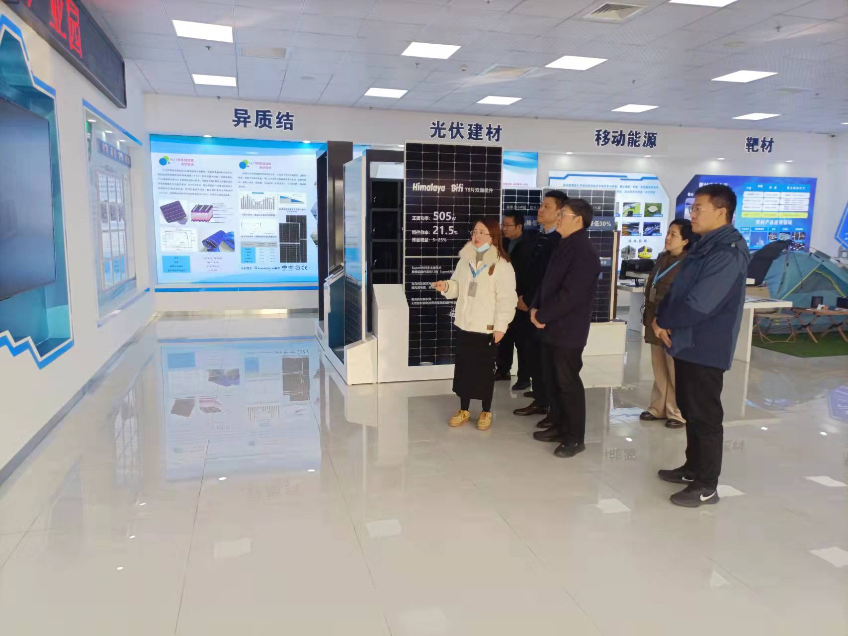 方潜生一行在宣城市住建局副局长朱远、宣城开盛新能源科技有限公司常务副总经理卢迪凯陪同下,参观了开盛光伏产业园,考察了高效硅异质结(HJT)太阳能电池500MW生产线及250MW中试线,听取了公司发展汇报,并围绕高效硅异质结太阳能电池技术在光伏建筑一体化领域的相关产品、关键技术及未来发展进行了深入交流。