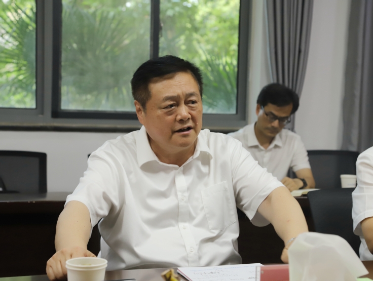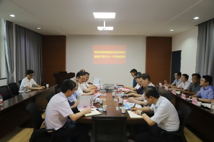本网讯 6月27日,安徽省住房与城乡建设厅党组书记、厅长贺懋燮一行来beat365在线唯一官网对安徽省建设领域碳达峰碳中和战略研究院进行专题调研并指导工作,厅党组成员、副厅长方廷勇,二级巡视员张启兵,标准定额处处长尹宗军,工程质量安全监管处处长何以文,建筑节能与科技处处长陈必喜、四级调研员朱力陪同调研。校党委副书记、校长黄显怀出席座谈会会议。会议由校督导员、安徽省建设领域碳达峰碳中和战略研究院院长、智能建筑与建筑节能安徽省重点实验室主任方潜生主持,校节能研究院、科技处相关负责同志以及安徽省建设领域碳达峰碳中和战略研究院技术骨干参加了会议。