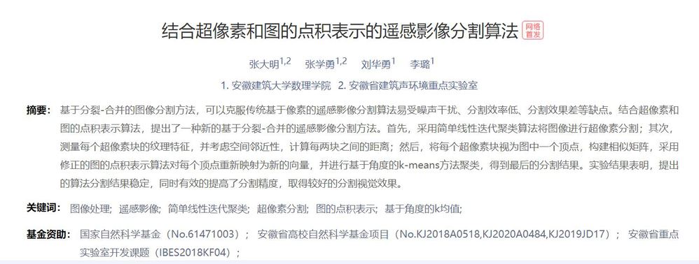 祝贺重点实验室张大明博士近日在《激光与光电子学进展》发表论文“结合超像素和图的点积表示的遥感影像分割算法”