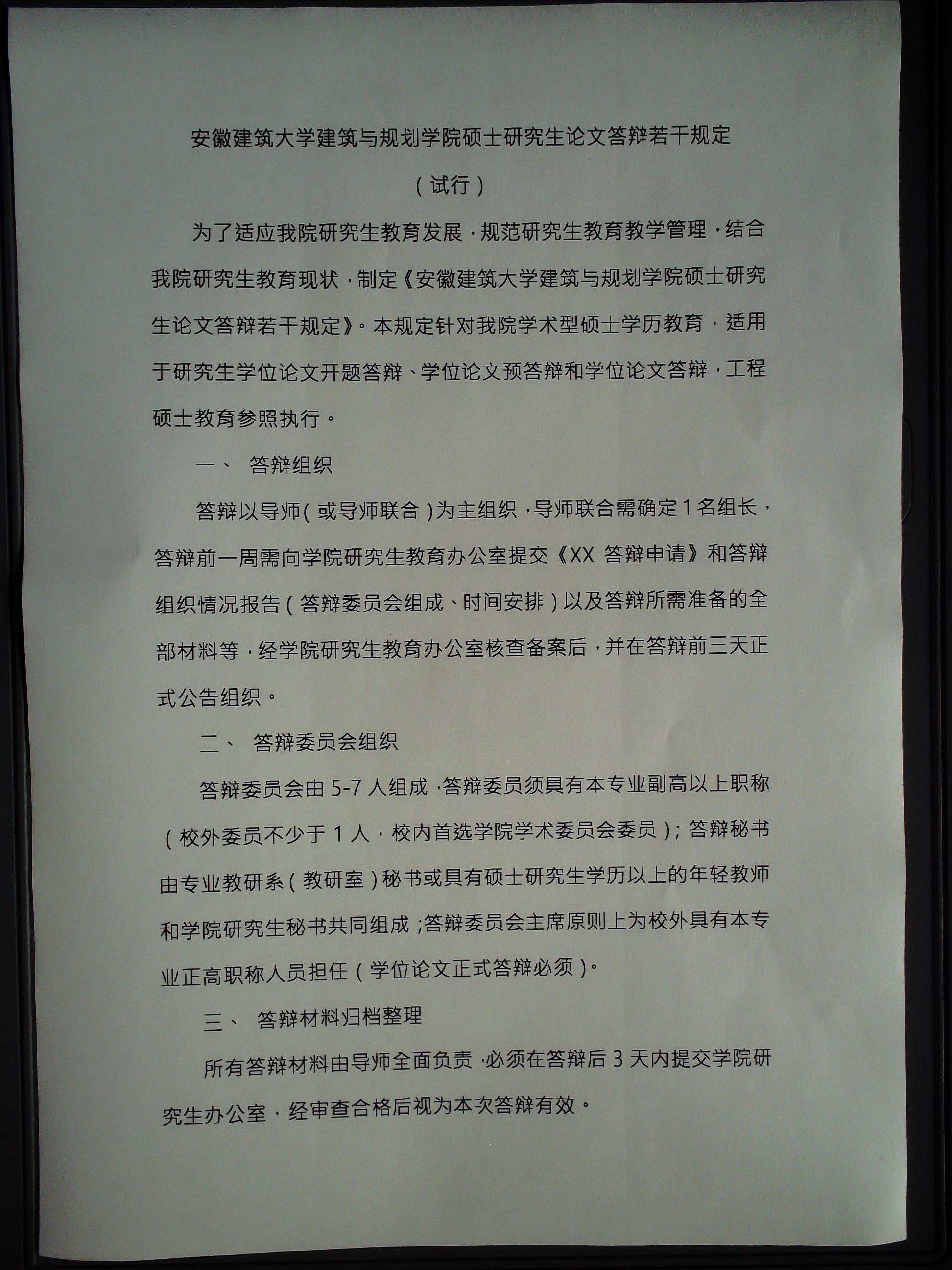 安建大建规学院硕士论文答辩若干规定(试行)