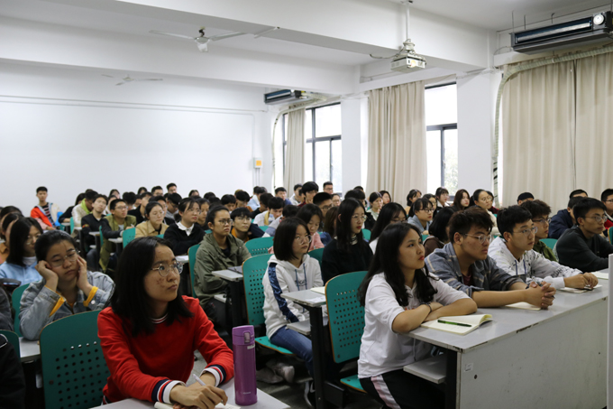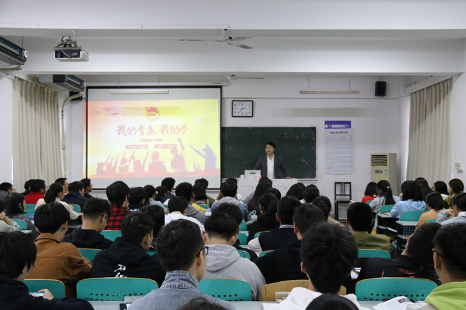 唐志敏从国际视野、国内形势、我的大学、青春这四个方面为同学们授课。希望团员青年胸怀天下,开拓视野,有创新精神;同时希望青年团员把握当下,化茧成蝶。